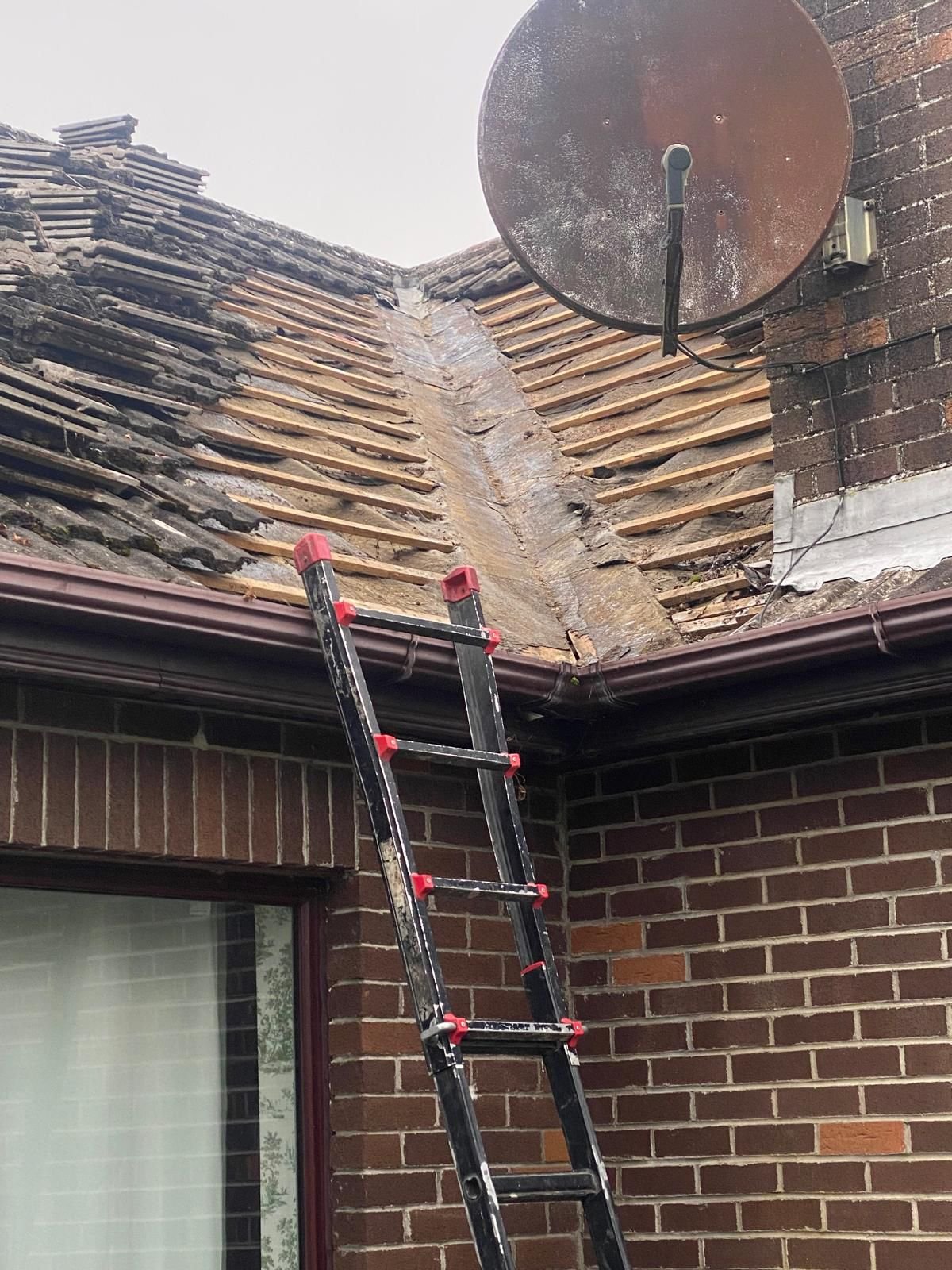 - Damage Assessment – Tiles, slates, valleys, ridge, flashing, underlay checked.